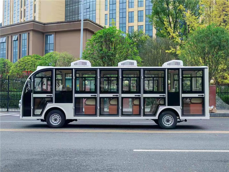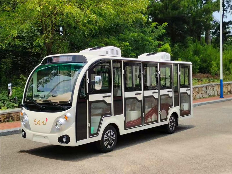使用場景:17 座封閉燃油觀光車具備載客多、舒適安全的優點。適用于景區、工業園區、機場等場所,能為乘客遮風擋雨,提供便捷的觀光體驗,滿足多人出行需求。