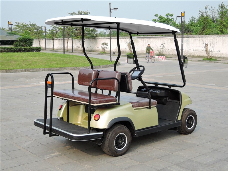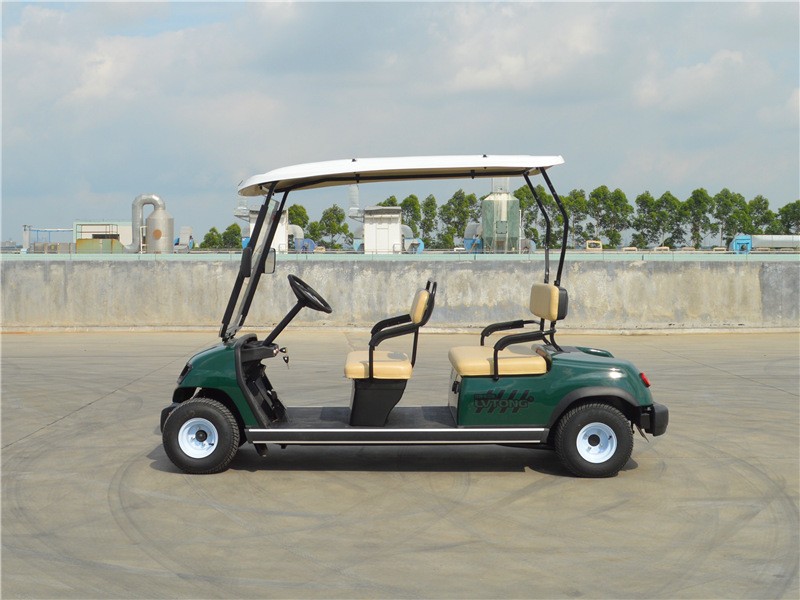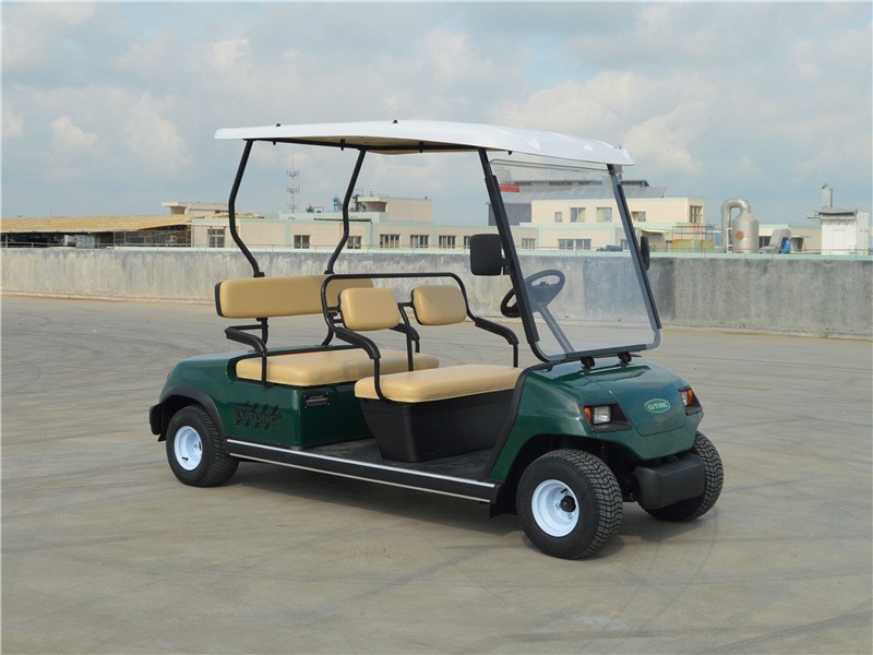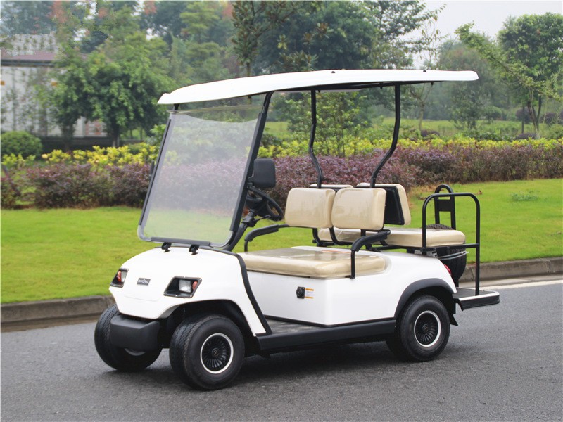 使用場景特點:四座高爾夫球車造型小巧可愛,操作簡便靈活。它具有良好的穩定性和舒適性,能適應各種場地。一般用于高爾夫球場,方便球員在球場上自由穿梭;也常見于一些高檔度假村、大型公園等場所,為人們提供便捷的短途代步工具,增添游玩的樂趣。